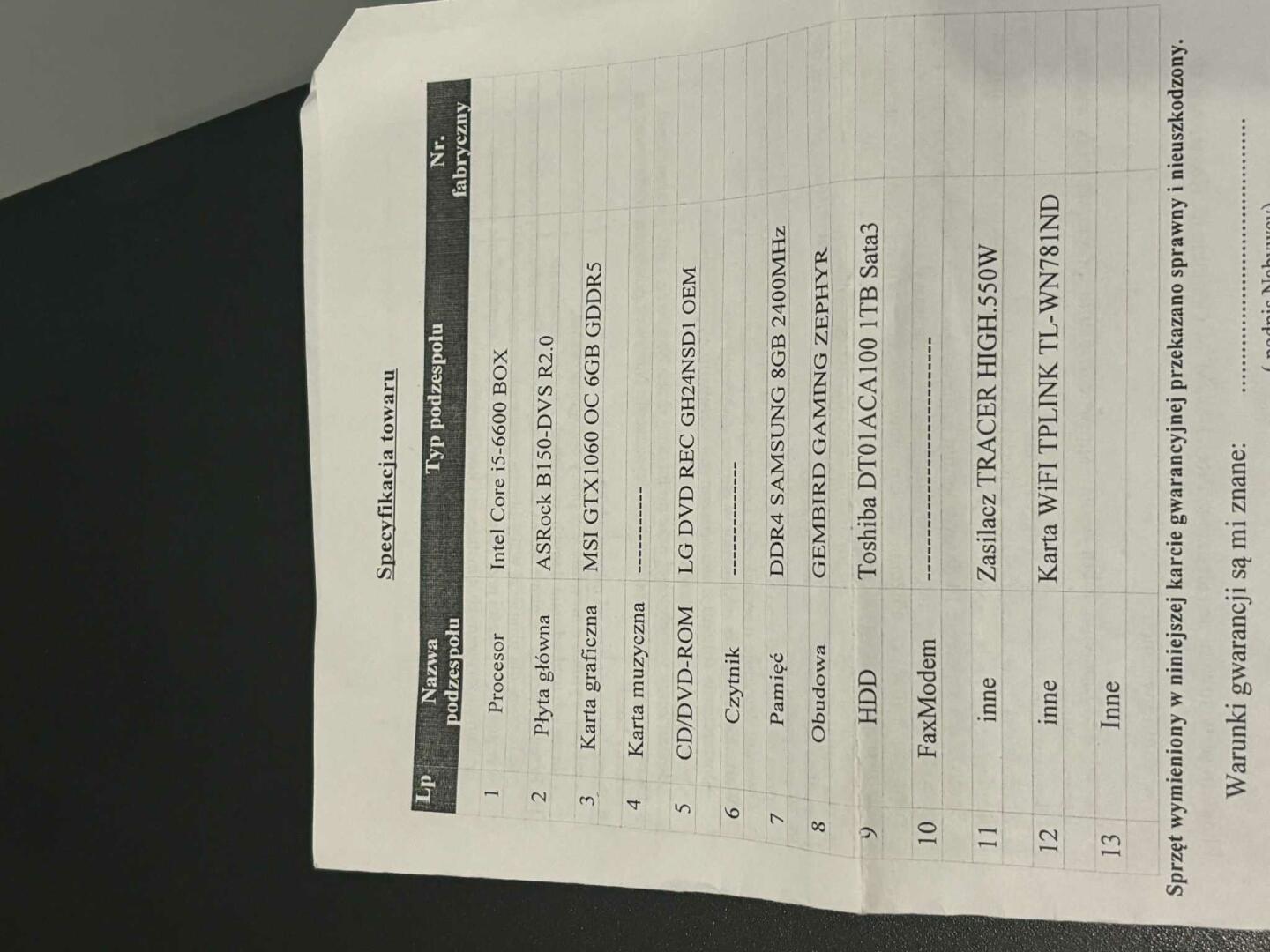 Witam sprzedam komputer. Procesor i5-6600, karta graficzna MSI GTX 1060, 8 GB ram